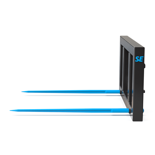 SE Equipments balspjut för kompaktlastare med spjut placerade sida vid sida är särskilt utvecklat för att ge trygg och effektiv hantering av oplastade rundbalar. Genom den horisontella placeringen av de dubbla spjuten får du ett brett och stabilt grepp som minimerar risken för att balen roterar eller glider under transport. Balspjutet är anpassat för Avant- och Multione-fästen, vilket gör det enkelt att montera på din kompaktlastare. Med en lyftkapacitet på upp till 1000 kg och en konstruktion i höghållfast stål är detta ett robust redskap för daglig användning inom lantbruk och gårdsarbete. Den kompakta designenfår du engod sikt och enkel manövrering även i begränsade utrymmen.